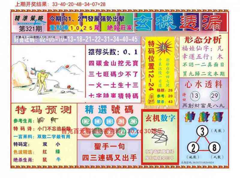 325期:特码暗语/曾道人救世心经/攻特料/六合心经/平码生肖点将