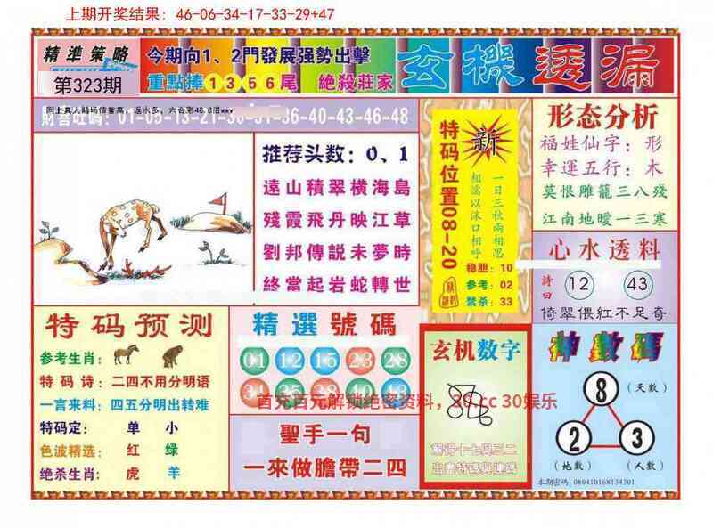 325期:白姐特段/简单发财诗/马会欲钱料/七娘一句中/开藏特图料