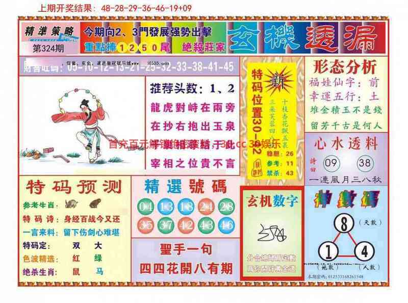 325期:六合三怪/内部平特诀/独家六合玄机/六合对诀/波色输尽光